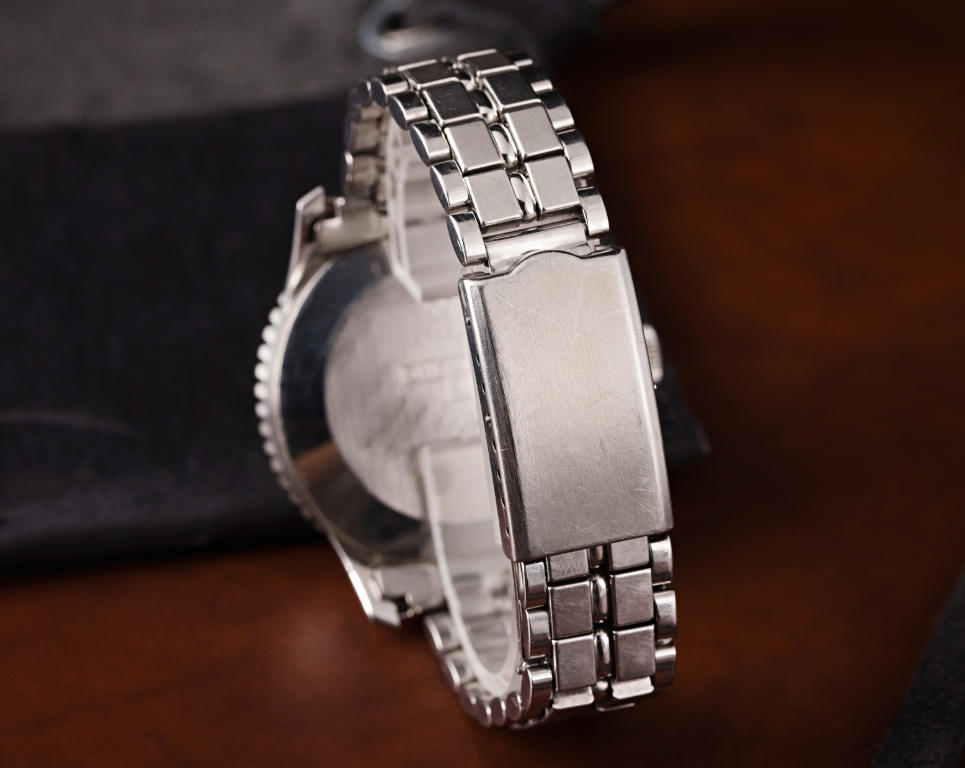 One of the most clearly vintage components of this Naviitmer is its five-link bracelet. With its oversized, squarish mid-links and comparatively slender oval outer links, it’s a pattern with more than a whiff of ‘70s funk about it, but it’s a period-correct addition to this example. What’s more, this particular bracelet was made by JB Champion, one of the most famous bracelet-makers of the period. JB Champion bracelets are a fixture across many of the greatest midcentury Swiss watches, and this particular bracelet lends its lightweight, jangly charm to a design already bursting with vintage character. It’s not a bracelet design that Breitling would ever reintroduce into the AAA fake Breitling Navitimer watches family, but it’s undeniably fun.